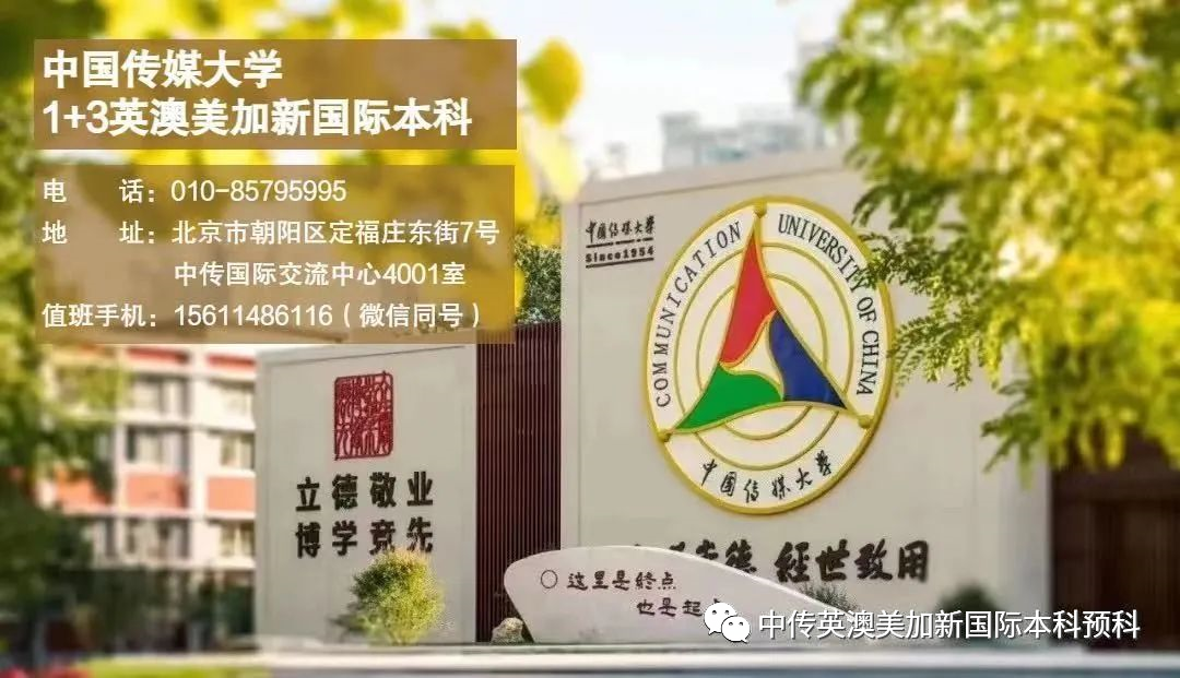 如果你有需要国内过渡,未来就读传媒、影视制作、时尚品牌管理、新媒体运营、全球媒体管理、艺术设计和商科管理类硕士的学生,中国传媒大学1+1硕士预科项目无论雅思成绩和学术背景,都能为你带来提升。